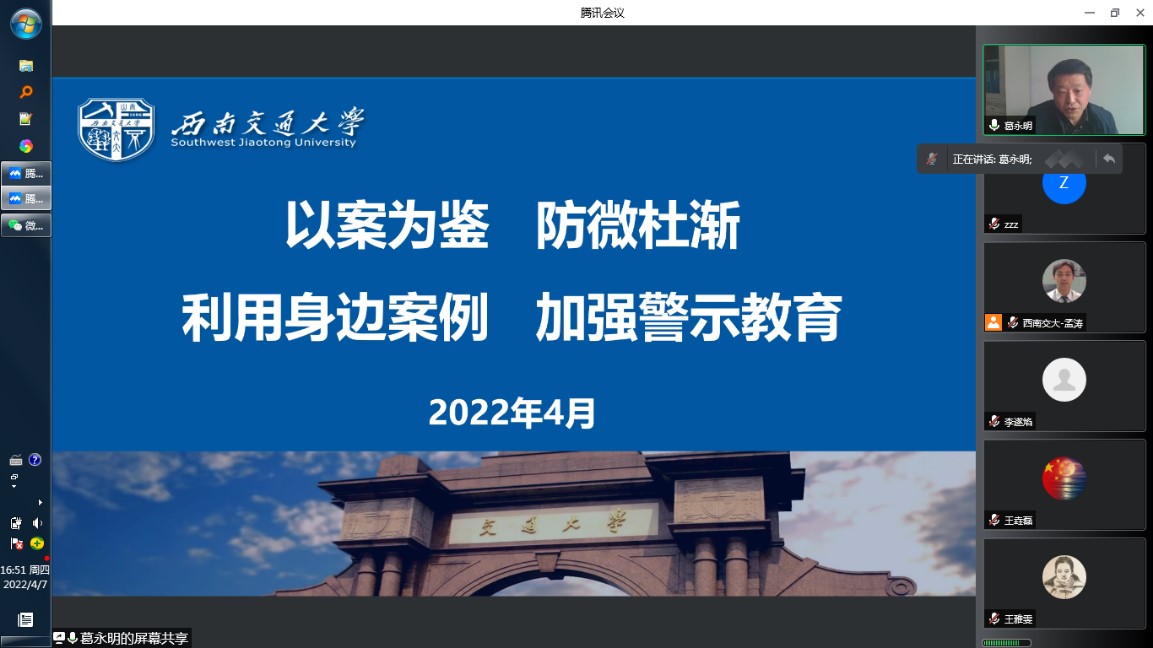 2022-04-112022年4月7日,生命科学与工程学院生物工程系教工党支部在线上开展师德师风警示教育活动,学院党委书记葛永明参加并开展了“以案为例,...