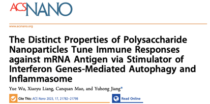 近日,我院江育虹副教授研究小组在国际TOP期刊ACS Nano (IF=17.1)上发表免疫佐剂机制领域论文“The Distinct Properties of Polysaccharide Nanoparticles Tune Immune Responses against mRNA Antigen via Stimulator of Interferon Genes-Mediated Autophagy and Inflammasome”,报道了多糖佐剂纳米化的免疫增强机制。江育虹副教授为通讯作者,2020级硕士研究生吴月为第一作者,硕士研究生梁晓钰参与部分工作,茆灿泉教授给予重要指导。