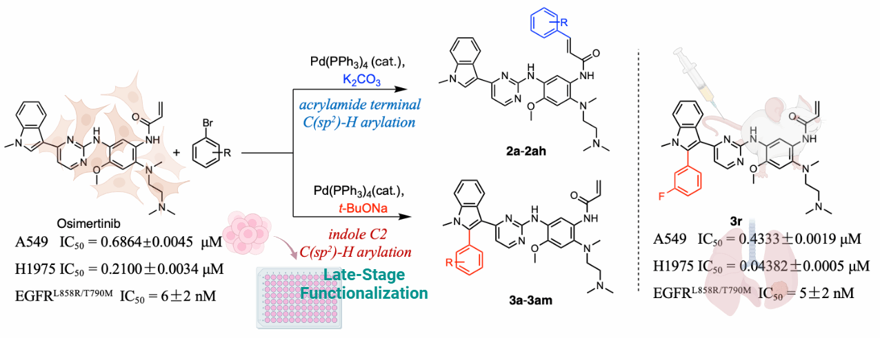 图1. 碱控制钯催化区域选择性合成奥希替尼芳基衍生物及其抗肿瘤活性