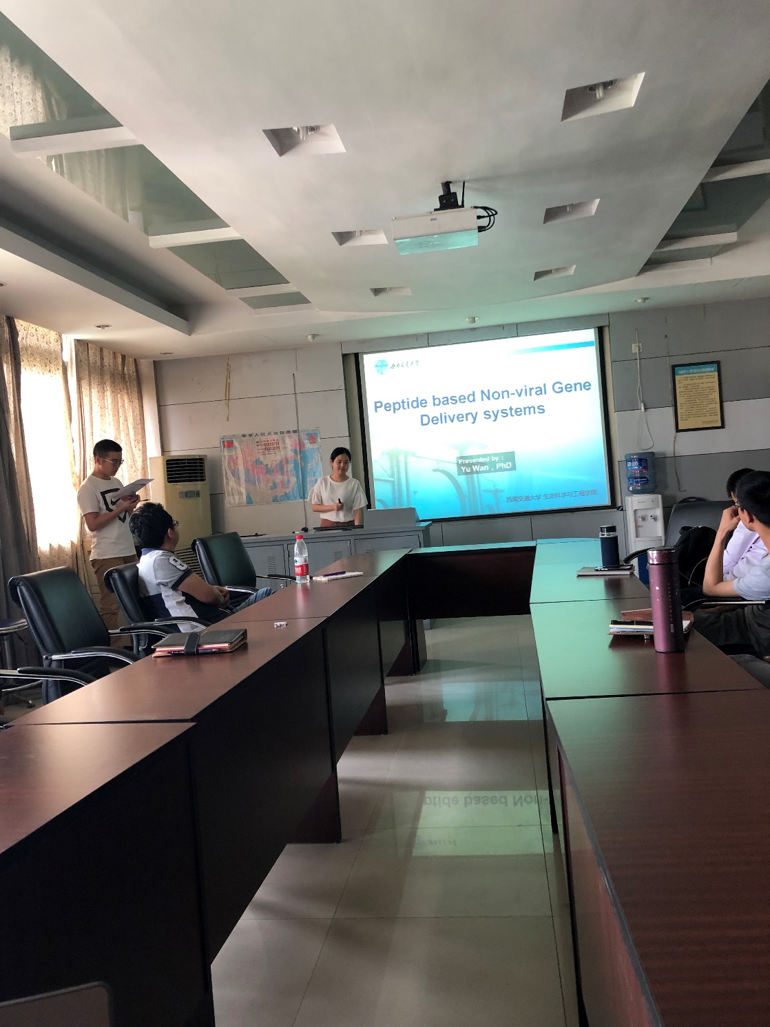肖检老师的报告题目为“发展镍催化的还原反应实现鬼臼毒素及其类似物的全合成”,他首先介绍了目前鬼臼毒素天然产物的全合成策略,并提出了该天然产物合成的难点。其次,结合课题组研究方向,成功发展了镍催化还原反应方法学策略,通过官能团简单转化,高效全合成鬼臼毒素天然产物及其类似物。随后,万瑜老师介绍了基于多肽的非病毒基因传递载体的构建与评价,拓展了大家对于基因治疗的认识。本期的青年教师学术沙龙圆满落幕。