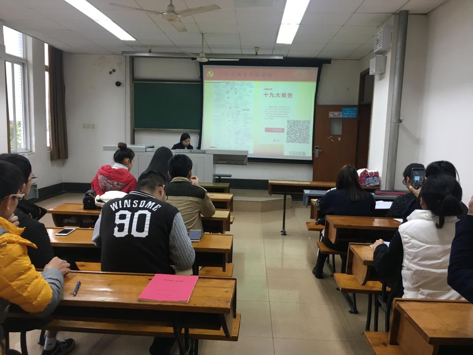 2017年11月17日下午3:50,生命学院15级硕士2班党支部在九里校区4419教室开展了“十九大”精神专题学习会,会议由党支部书记徐瑶主持,支部全体党员和入党积极分子参加了学习。