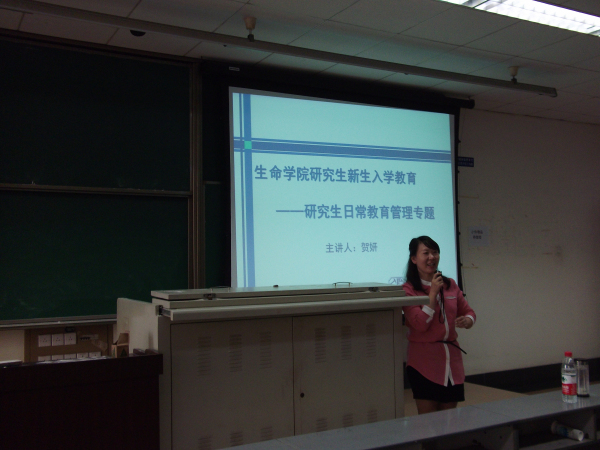 10月11日下午,生命学院在九里校区4318教室举行了研究生新生入学教育活动。此次活动邀请了学院党委书记李卓慧和研究生辅导员贺妍进行专题宣讲,2013级全体新生参加了教育。