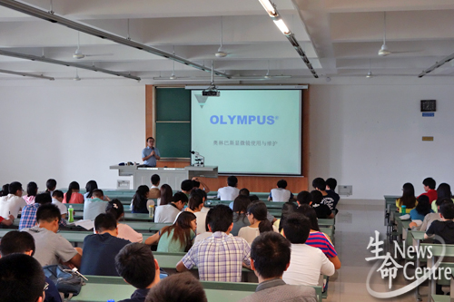5月29日下午,实验中心联同奥林巴斯公司在犀浦校区为生命学院本科生进行了显微镜的使用方法和维护细节的讲座。讲座中简要介绍了显微镜的基本参数、成像原理及基本光学部件等,随后详细分析使用过程中经常出现的“打片”和“找不到焦平面”两种情况的具体原因,并现场演示切换物镜时的正确方法。此外,还指出实验者应学会通过调节聚光环及屈光度达到更清晰的观察视野。日常维护保养显微镜部分,重点解说了100倍油镜及40倍物镜的清洁方法。同学们纷纷表示这样的讲座很有意义,自己会将所听内容真正应用于日常实验过程中。