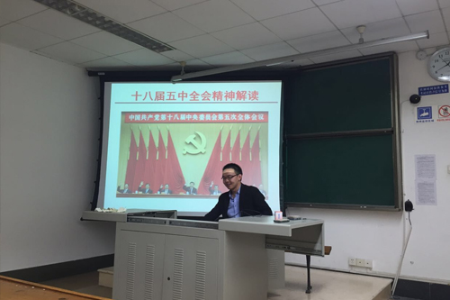 为深入学习贯彻党的十八届五中全会精神,生命14级硕士2班党支部于2015年11月25日晚上,在逸夫馆4404A举行了“十八届五中全会精神学习研讨会”党支部特色活动。活动由支部组织委员曹佳红主持,支部全体党员,积极分子参加。为了增强支部全体成员的学习热情,本次支部活动采取小组PPT比赛形式。活动开展前一周,将支部成员分成了四组,积极分子任组长并组织支部党员学习研讨,最终将研讨结果做成PPT。活动开始时,主持人曹佳红向大家宣读了比赛规则,并由党支部书记,班长等5名同志担任评委。各小组结合十八届五中全会的热点,呈现了内容丰富精美的PPT,并做了精彩纷呈的解读,将十八届五中全会精神剖析的淋漓尽致。特别是罗金琪组对“民生”问题深入分析解读将本次支部活动推向了高潮。最后本着公平公正的原则,评委对小组精彩表现进行了打分。最终评出了一等奖1组,二等奖1组,三等奖2组,支部向各小组成员发放了精美小礼品。