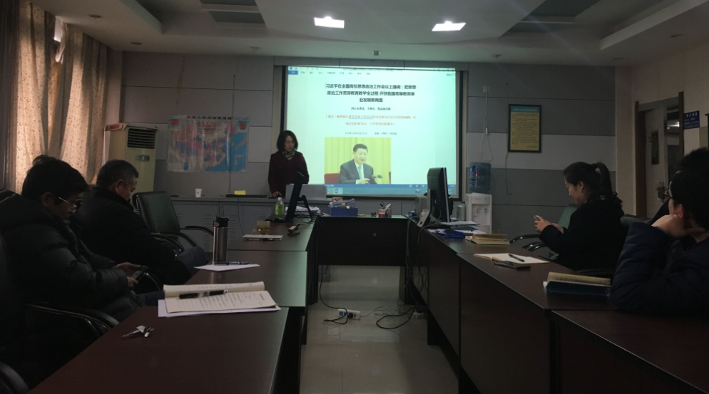 接下来,李卓慧书记带领与会人员学习了全国高校思想政治工作会议的主要精神。她以人民网、人民日报刊发的《习近平在全国高校思想政治工作会议上强调:把思想政治工作贯穿教育教学全过程,开创我国高等教育事业发展新局面》为蓝本,从高校思想政治工作的重要地位、重要作用,坚持社会主义办学方向的原则立场,做好大学生思想政治教育工作、抓好教师队伍建设,改革创新高校思想政治工作的基本要求,坚持党对高校领导的政治要求等方面详细解读了习近平总书记重要讲话精神。她强调,高校思想政治工作关系高校培养什么样的人、如何培养人以及为谁培养人这个根本问题,要坚持把立德树人作为中心环节,把思想政治工作贯穿教育教学全过程,实现全程育人、全方位育人。学院班子成员一定要认真学习并贯彻全国高校思政会议的重要精神,并自觉用习近平总书记重要讲话精神统一思想认识,深刻认识做好高校思想政治工作的重要性,做好自己分管领域的思想政治工作,切实贯彻好习近平总书记重要讲话精神,为培养一流人才、建设一流大学而努力。
