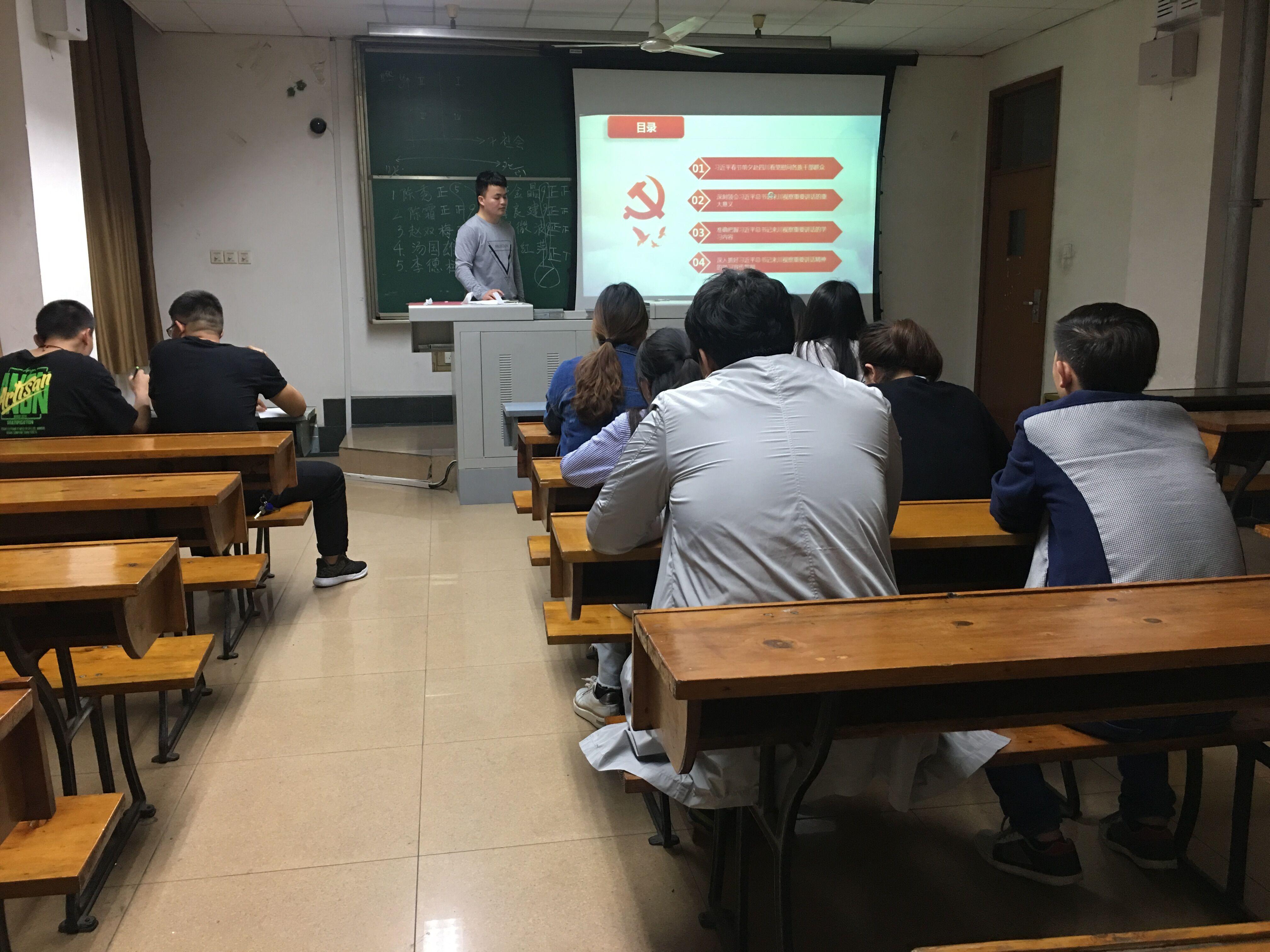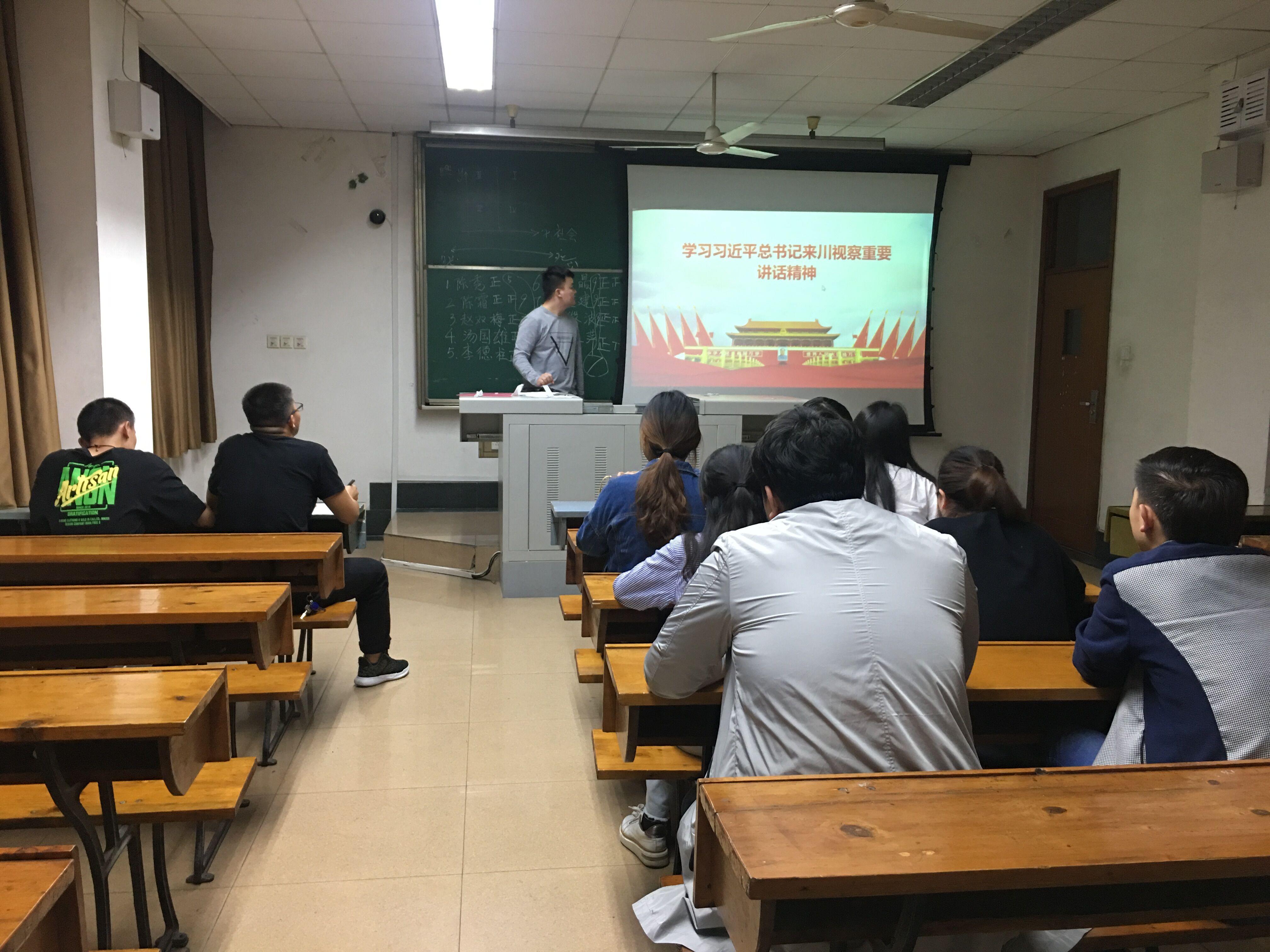 2016级硕士党支部于4月18日晚在4419教室召开组织生活会,专题学习习近平总书记来川视察的重要讲话。会议由支部书记韦乐华主持,支部全体党员参加了学习。