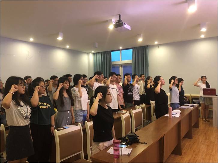 会议伊始,刘丹丹同志介绍了党支部成员到会情况和会议内容。接下来,由王珏、李宁、孙华、戴佳咪、姜吉瞳、白楚峰、于梦妲这七名预备党员依次发言,向党支部汇报了自己在预备党员一年期间的个人情况等,重申了入党愿望和转正申请。随后各入党介绍人分别介绍了预备党员考察培养情况,并对预备党员提出了希望和建议。接下来,与会党员充分讨论并发表意见后进行了无记名投票表决,七名预备党员均全票通过按期转正。最后,在刘丹丹同志的带领下,全体党员面对党旗宣誓,再次坚定了自己的理想信念。