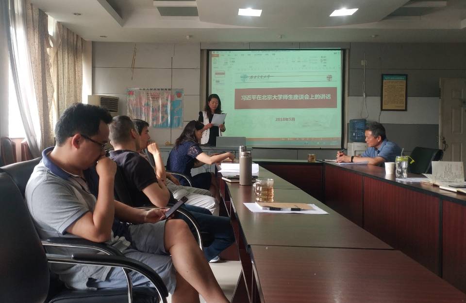 随后,与会人员就习近平总书记的讲话进行了交流讨论,并结合工作实际谈了学习体会和感想。党委书记任平弟同志强调指出:习近平总书记在北大师生座谈会上的讲话,以及在纪念马克思诞辰100周年大会上的讲话,是教育部发文要重点学习的内容,全体党员领导干部要高度重视并加强学习。学院各级领导要带领全体教职工紧紧把握 “立德树人”这个根本任务,抓好师德师风建设和日常各项工作的开展。他还向与会人员简要介绍了我校近期开展教师思想政治工作和师德师风建设的相关情况,并重申:政治理论学习一定要与实际工作结合起来,既要认真领会讲话内容,更要落实贯彻讲话精神,要学到实处、学用合一。