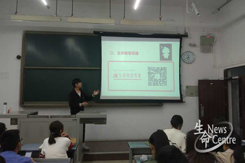 首先由宋俊伟同志为大家介绍“生命智慧党建”微信公众号,为方便对学生党员进行思想政治教育工作,生命学院开设网络“智慧党建”公众账号,方便党员同志进行线上线下交流学习,提高学习时效性。