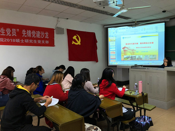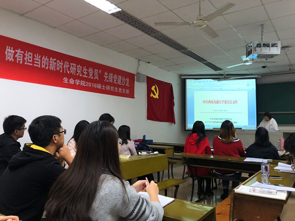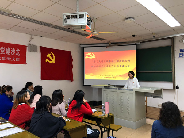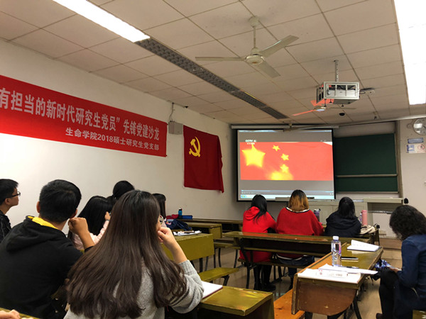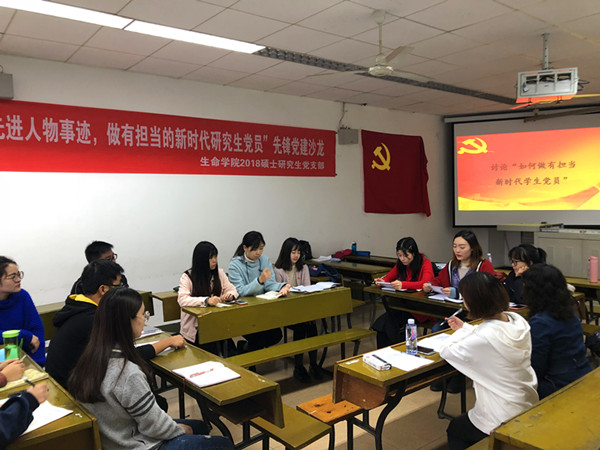 10月18日下午,生命学院2018级研究生党支部于九里4505A教室开展了“学习先进人物事迹、做有担当新时代党员”的主题党日活动暨先锋沙龙活动。活动由党支部书记王珏同志主持,党支部全体党员和入党积极分子参加,党支部指导老师、学院党委委员贺妍同志出席了活动并讲党课。