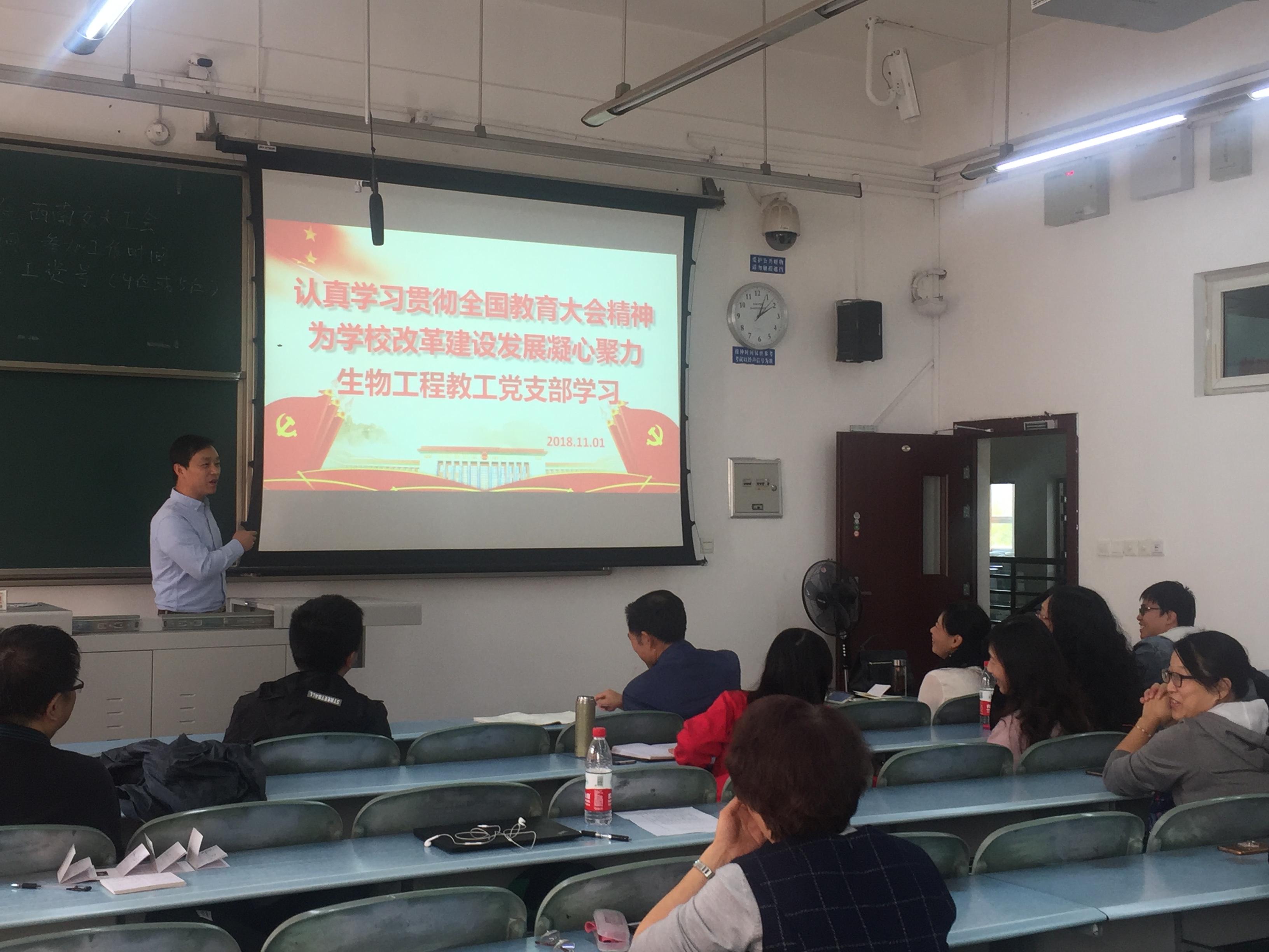 11月1日下午,生物工程系教工党支部在犀浦校区X2326教室开展“认真学习贯彻全国教育大会精神,为学校改革建设发展凝心聚力”主题党日活动。活动由支部书记孟涛同志主持,支部全体党员参会。