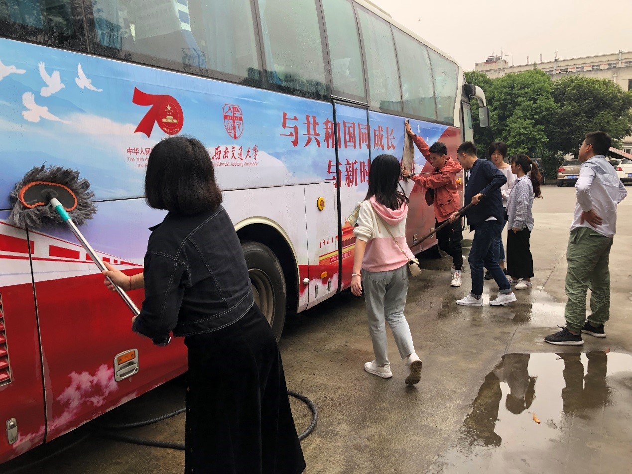 在祖国母亲生日之际,为给祖国母亲庆祝生日,生命学院2018级硕士研究生党支部于9月28日下午在西南交通大学九里校区校车站开展了以“清洁校车行 温暖师生心”为主题的社会实践活动。活动由2018级党支部书记王珏同志主持,支部的党员和积极分子都参加了活动。