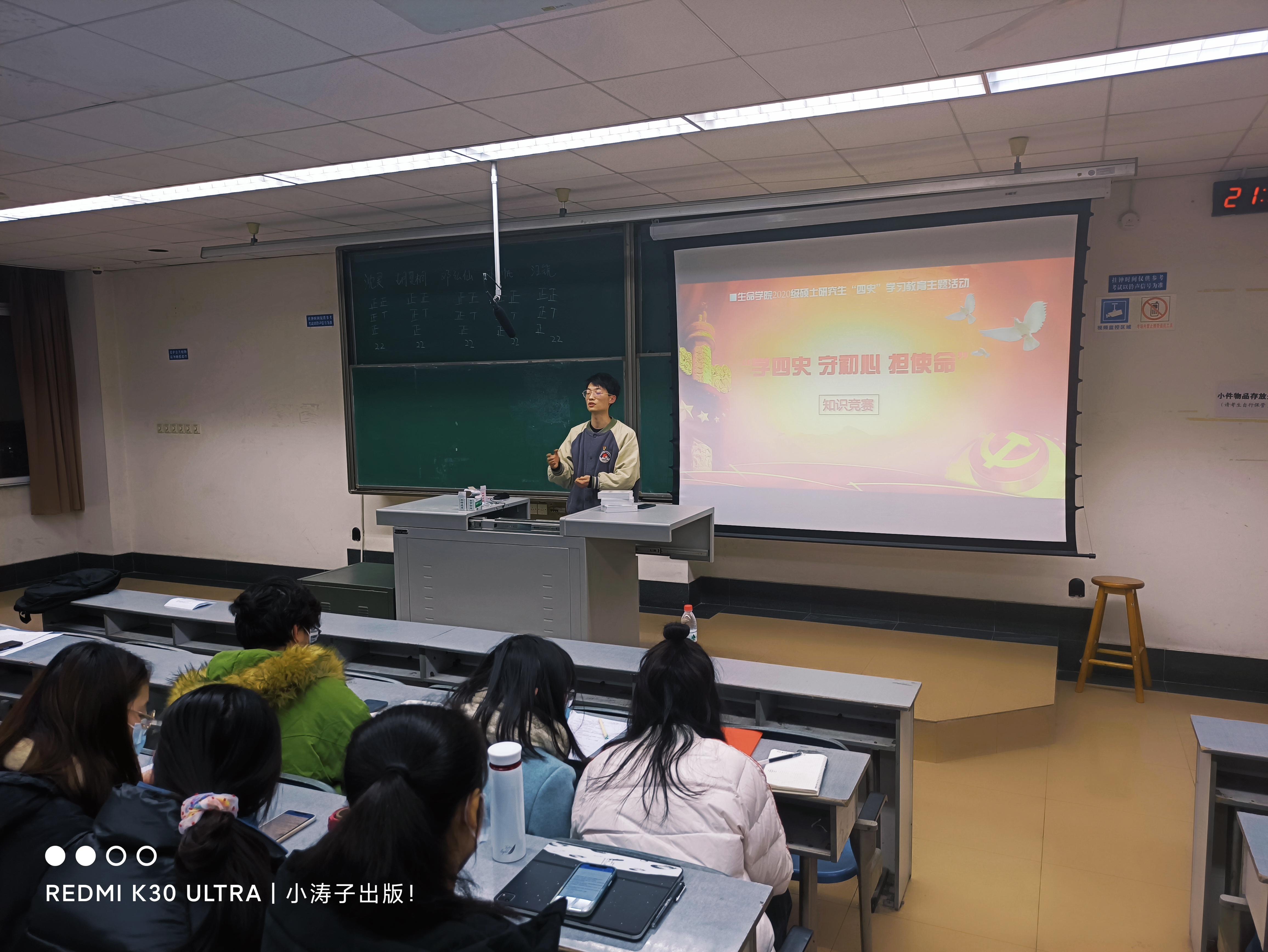 为深入学习贯彻习近平新时代中国特色社会主义思想,12月29日晚,生命学院2020级硕士研究生党支部在九里校区4308教室开展了 “学四史 守初心 担使命”主题 “党史”知识竞赛。通过以赛促学,以学促用,促进学生党员学习中国共产党的百年奋斗历程,在广大学生党员中引起了热烈反响。