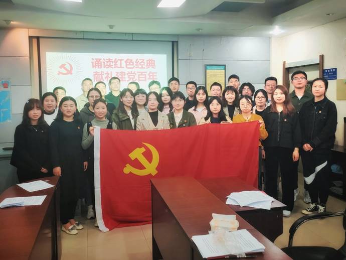 在党支部委员的号召下,全体党员们深情朗读习近平总书记相关语录,并通过制作成音频的方式,向党献礼。活动最后,全体党员合照留念。