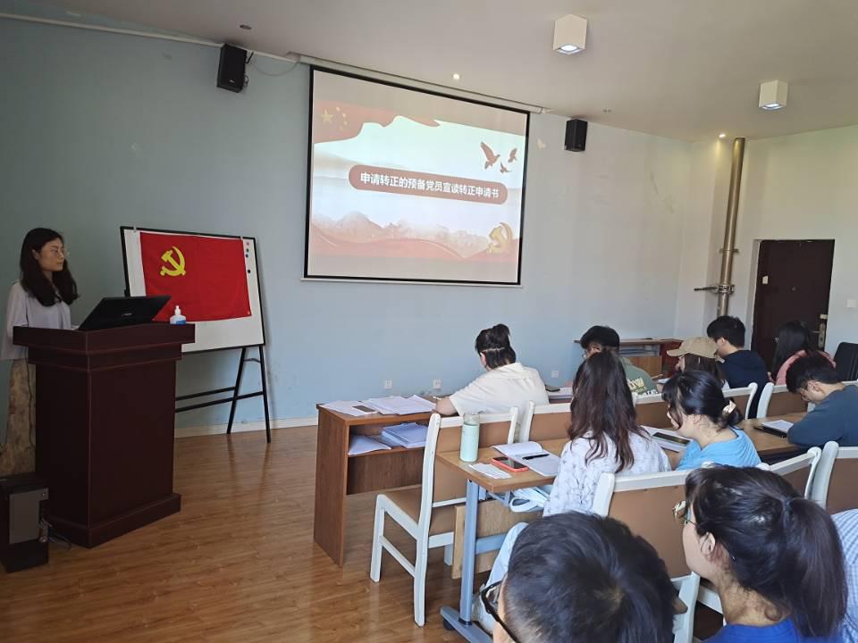 会议开始,胡慧怡老师介绍了本次会议的流程和要求,随后11名申请转正的同志依次上台发言,宣读转正申请书,对考察期以来的思想、学习、工作、生活等方面进行了汇报,入党介绍人介绍预备党员在预备期间的教育和表现情况,提出能否转为正式党员的意见。随后,正式党员严格按照流程进行无记名投票表决,毛致用等11名同志均通过投票表决,按期转正。