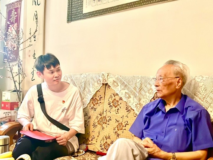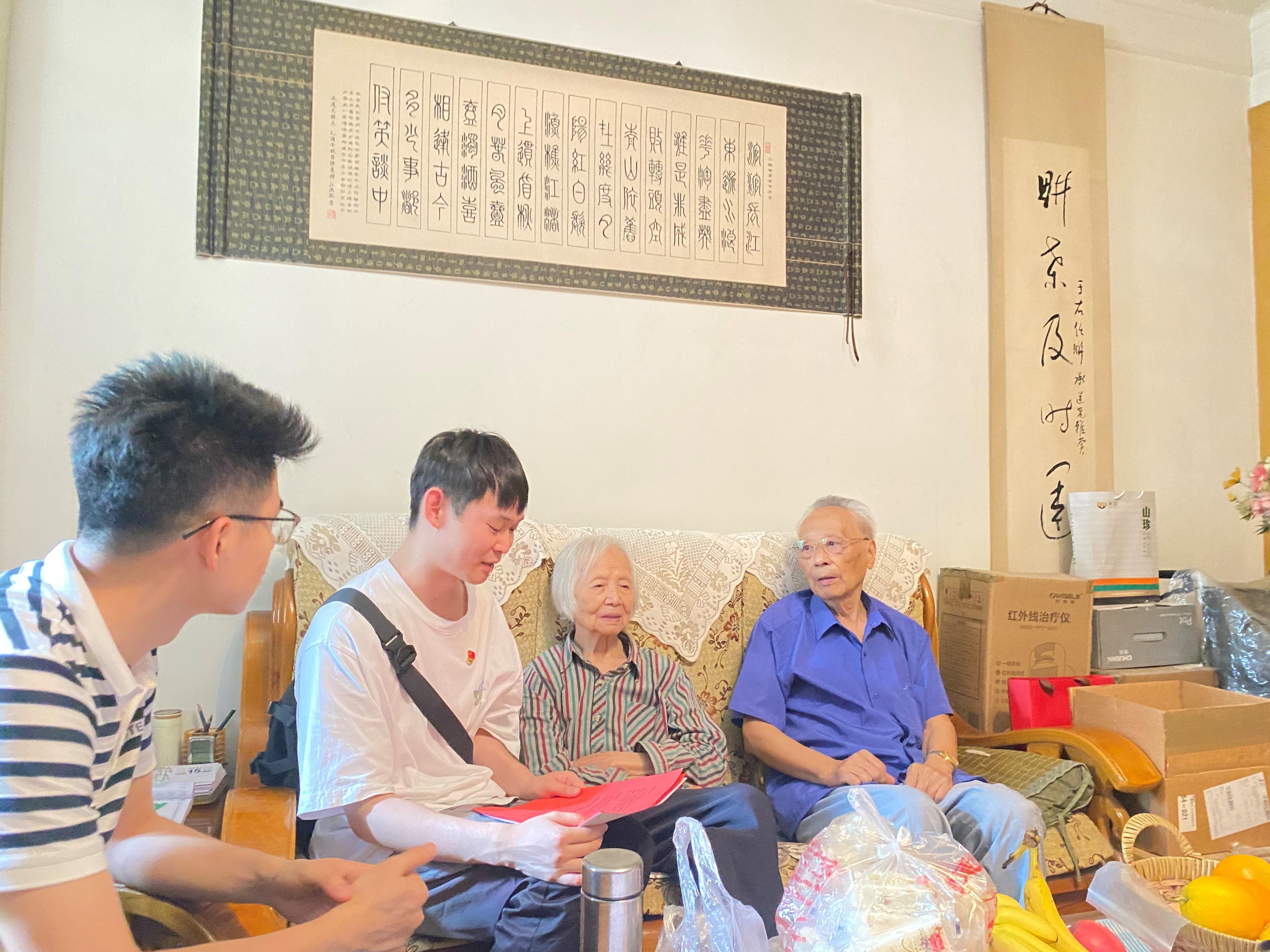 为迎接学校第十五次党代会的胜利召开,2022年6月17日下午,生命学院硕士研究生化学与生物学党支部联合硕士研究生生物与医药党支部开展了读懂中国,致敬“五老”活动,由黄斌翰、左锐、杨书翰、何奕佳四位党员同志作为党员代表,前往我院退休教师张承道家中慰问采访。