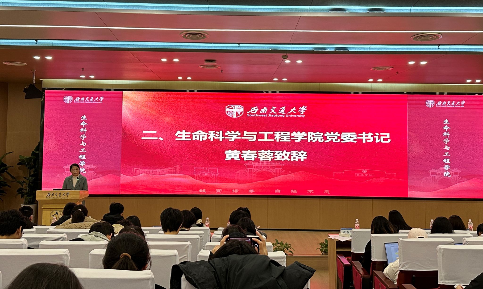 128日晚,生命科学与工程学院2024-2025学年青年马克思主义者培养工程(以下简称青马工程)开班仪式暨开班第一课在犀浦校区图书馆一号报告厅举行。生命学院党委书记黄春蓉、党委副书记高鹏、校团委组织工作办公室主任张敬文、生命学院团委第三届委员会,200余名生命学院本科、硕士、博士学生骨干参加本次培训。培训由学院团委书记杨颖增主持。