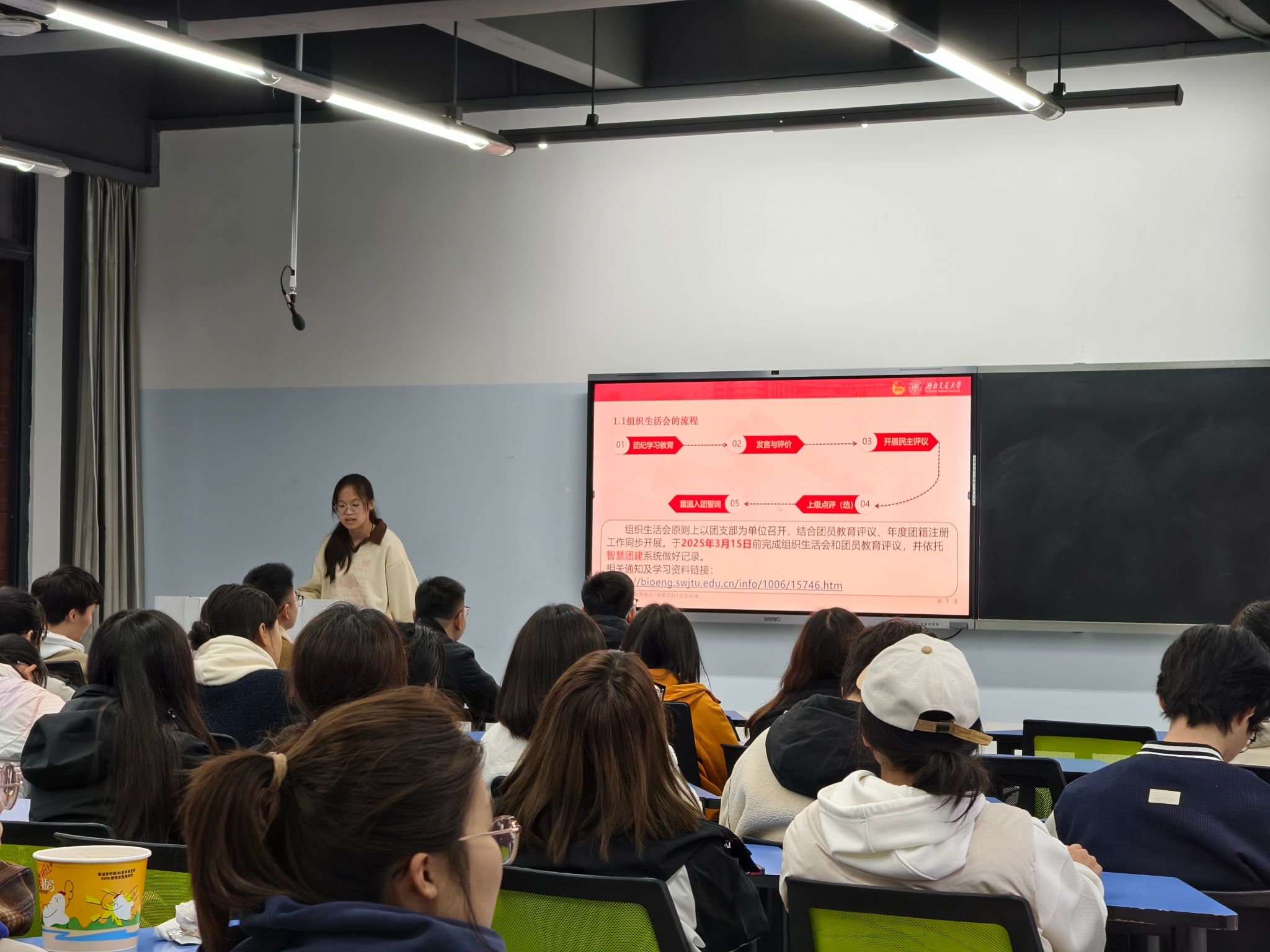 为提升基层团干部业务能力,规范团支部组织生活流程,2025年3月2日晚,学院团委于X9302教室召开团支部组织生活会及团员教育评议培训会。学院团委书记、副书记,各团支部书记及支部委员代表参会。