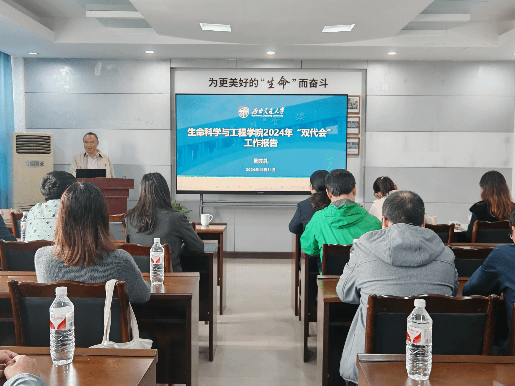 大会在庄严的中华人民共和国国歌声中拉开帷幕首先,周先礼院长从四个方面向大会作生命学院2024年“双代会”工作报告。
