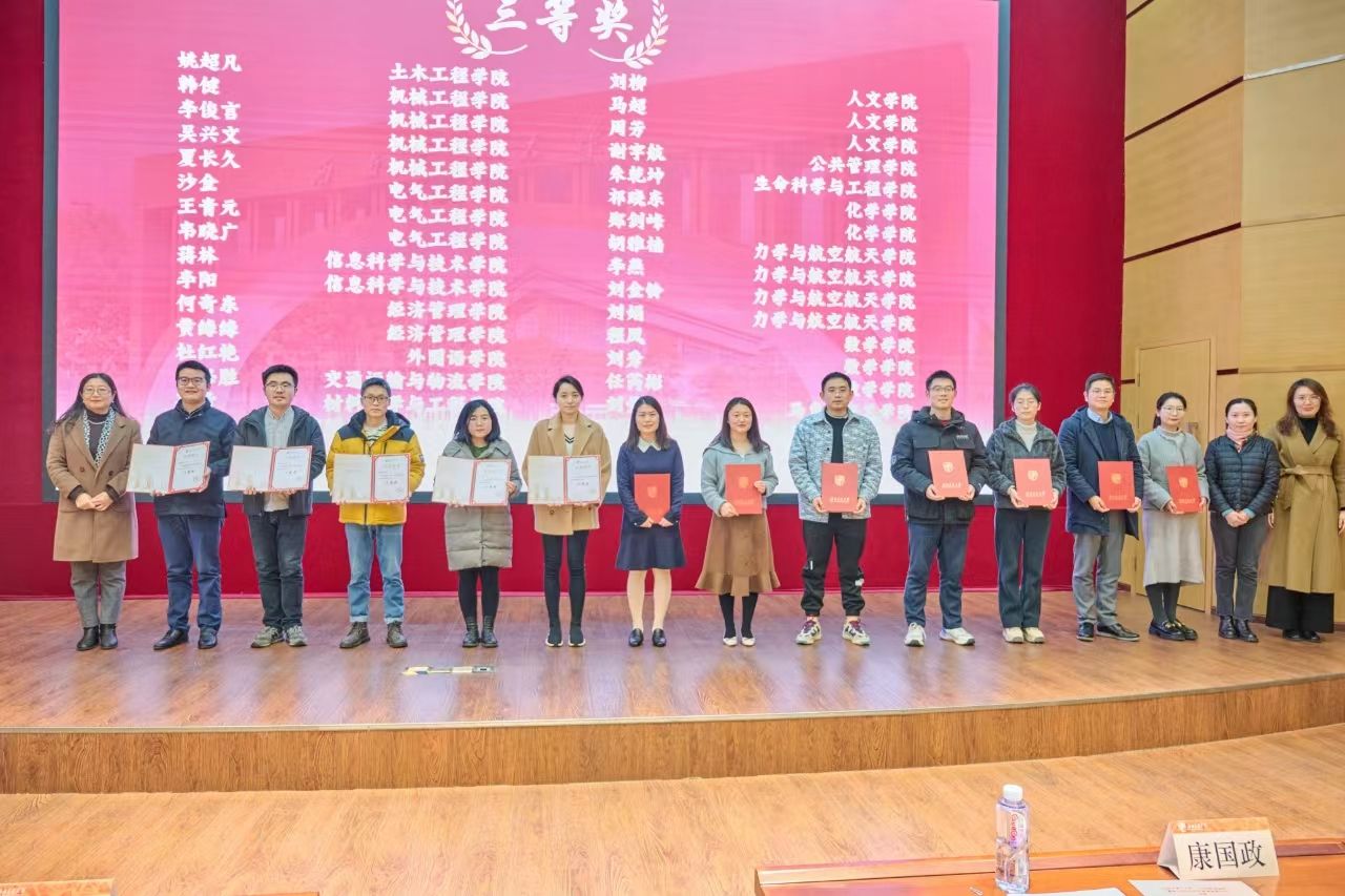为弘扬践行教育家精神,做好青教赛总结表彰工作,1月16日下午,西南交通大学在犀浦校区交运楼418举行第十一届青年教师教学竞赛颁奖礼。学校党委常委、副校长康国政出席颁奖礼。第十一届青教赛获奖教师和学院负责人、学院工作人员,教工部、校工会、教务处负责人参加活动。颁奖礼由党委教师工作部(教师发展中心)副部长李箐主持。