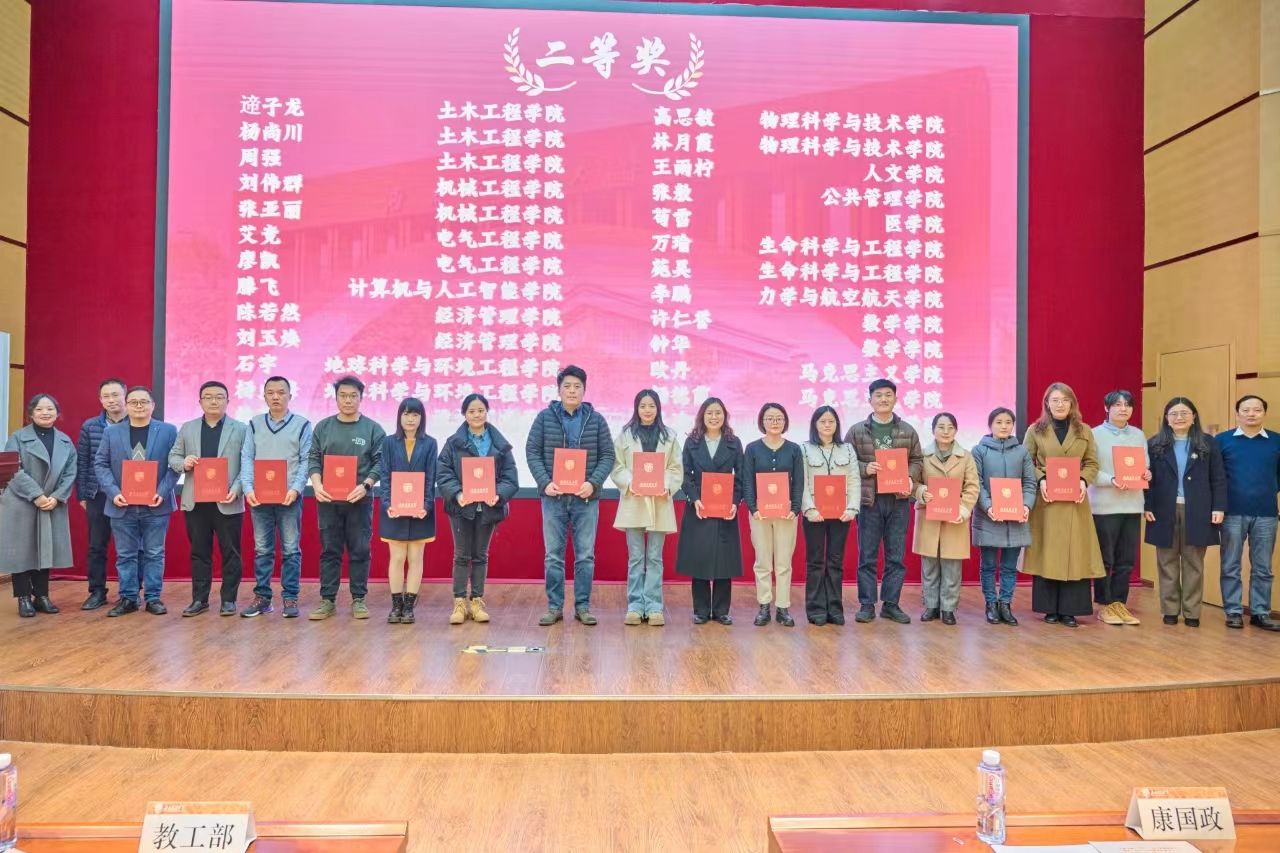 活动在名为《切磋磨砺之路》的回顾短片中拉开帷幕。随后,举行了获奖教师和优秀组织奖颁奖仪式,我院青年教师通过初赛、复赛、决赛历时半年过五关斩六将,在本次青教赛中有三位老师脱颖而出,他们分别是二等奖获得者万瑜、苑昊老师,三等奖获得者朱乾坤老师。