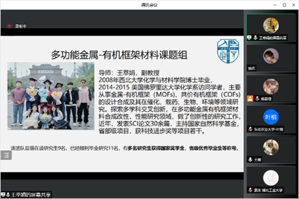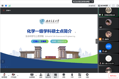 7月7日下午14:30,谭睿老师、王璨老师、王萃娟老师等13名老师与65名同学汇聚于腾讯会议,开展了既严肃紧张又生动活泼的师生交流。在此环节,老师们向来自全国各地的学子详细介绍了自己的研究领域、研究成果、团队成员及未来的研究方向,并对各位优秀学子的报考表达了真挚的欢迎。在老师介绍结束后,同学们接二连三的就自己感兴趣的研究方向进行提问,与各位老师深入交流,表现出了浓烈的学术兴趣。