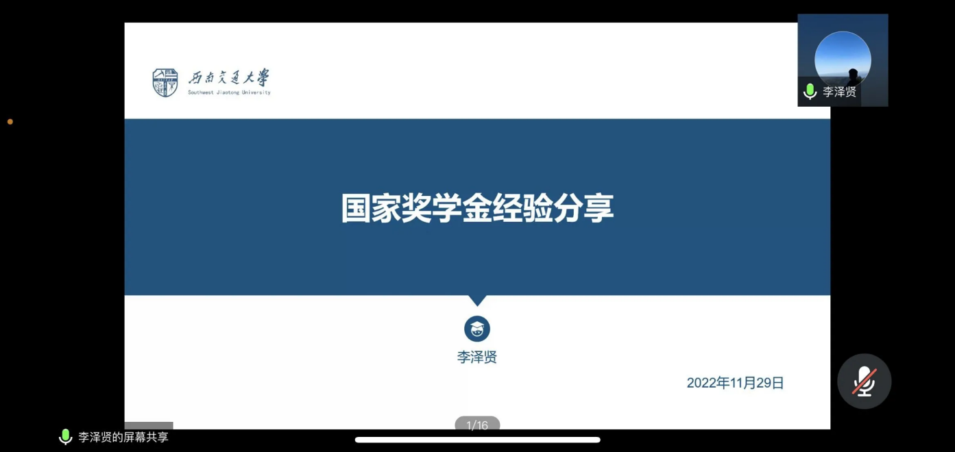 首先,2022年博士国家奖学金获得者李泽贤紧紧围绕科研、学习及生活等方面进行了经验分享。在经验分享会上,他讲到在研究生学习阶段,要保持良好的生活心态,养成良好的学习习惯,更要有持之以恒、勤奋认真的科研态度。他还建议同学们一定要多读文献,夯实基础,这样科研才会有好的创新点。此外,李泽贤博士还强调“身体是革命的本钱”,一定要保持健康的体魄。