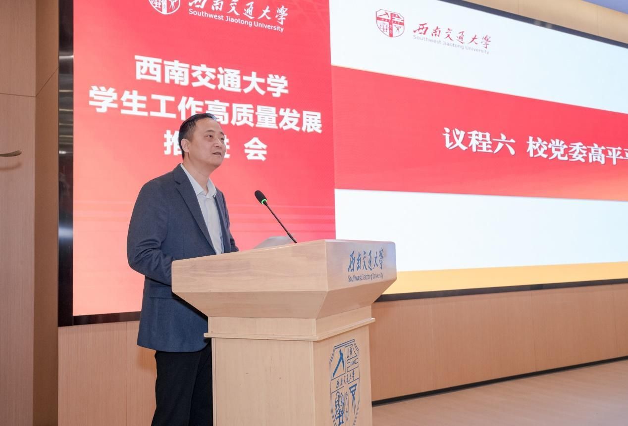 为总结经验、凝聚共识、巩固成果、表彰先进,全面加强学生工作科学化和内涵式建设,进一步以高质量学生工作助力学校人才培养和各项事业跨越式发展,学校于3月15日在犀浦校区图书馆一号报告厅召开学生工作高质量发展推进会。校党委副书记高平平出席会议并讲话。