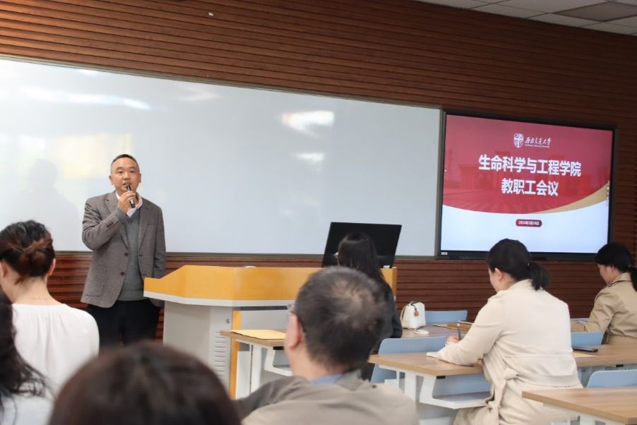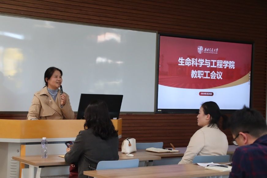 3月28日下午,生命科学与工程学院在犀浦校区召开2023-2024学年第二学期全体教职工会议,传达学校相关工作精神,对新学期各项工作任务进行动员部署,进行本科教育教学审核评估相关内容及教职工政治理论专题学习。学院领导班子及全体教职工参加会议,会议由学院党委书记黄春蓉主持。
