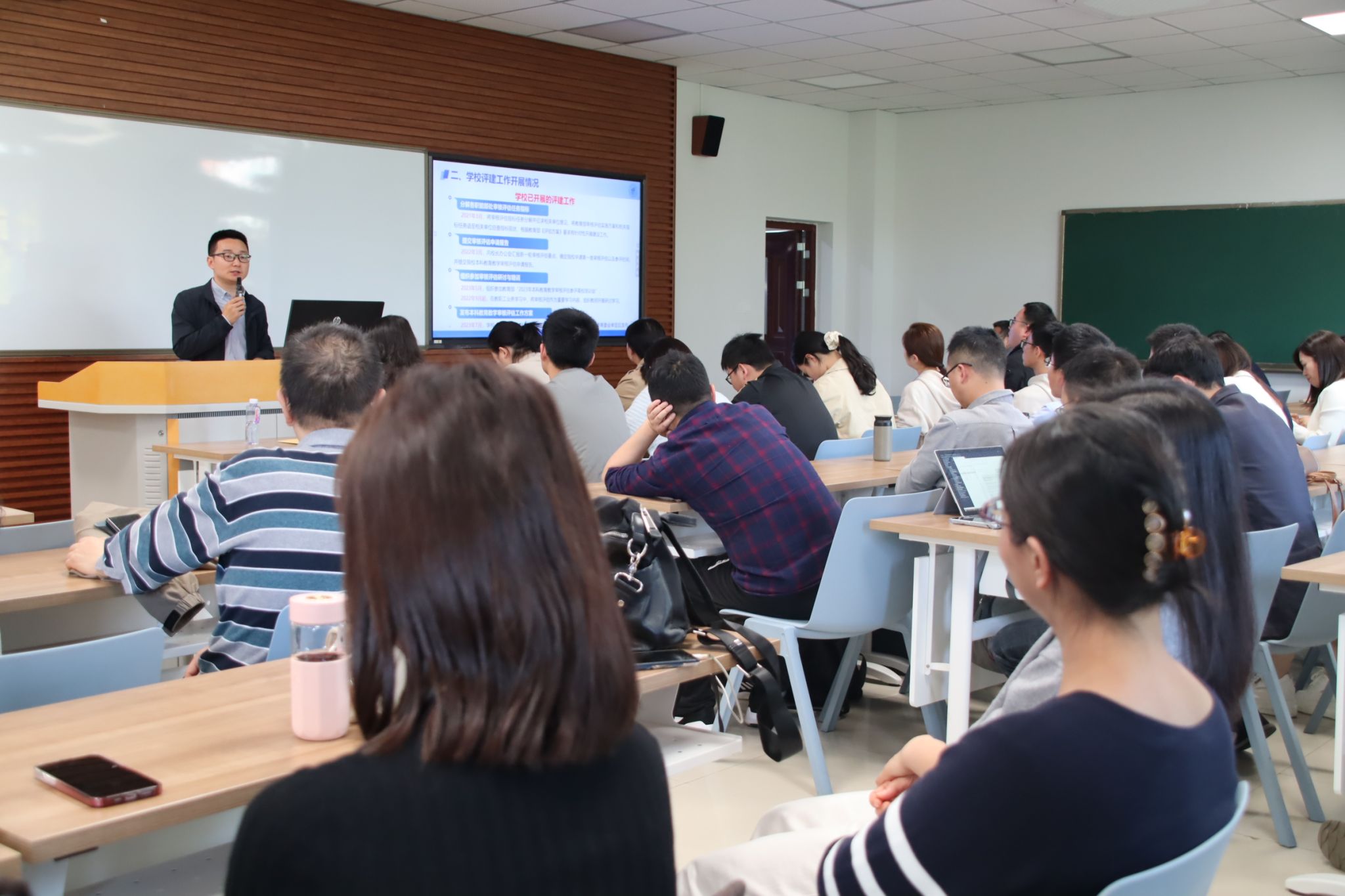 为深入推进教育教学改革,全面迎接新一轮本科教育教学审核评估工作,持续推动我院人才培养工作再上新台阶,本次会议特别邀请了学校教务处教质量评估办公室主任冷伟老师为全体教职工作本科教育教学审核评估培训。冷伟主任从本科教育教学审核评估要点、学校评建工作开展情况、迎接新一轮审核评估教师何为等3个方面做了详细阐述,特别强调了新一轮审核评估的评估指标及突出特点,并将与教师相关的事项做了逐一解答。