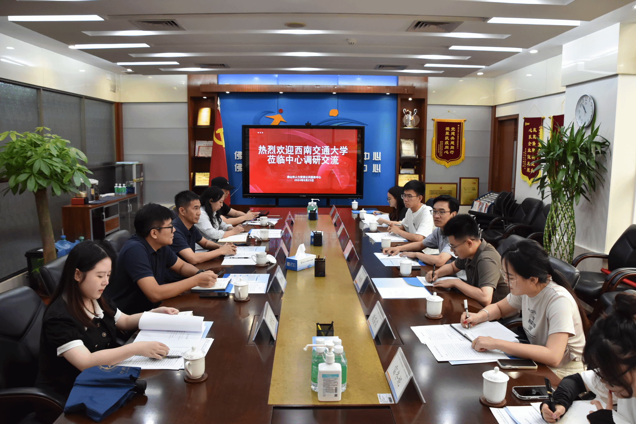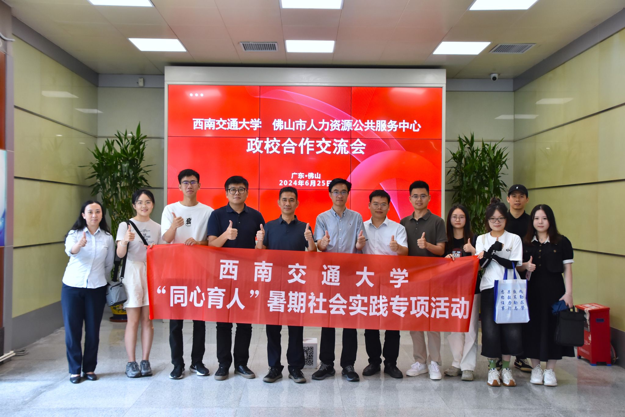 6月25日上午,学院师生来到佛山市人力资源公共服务中心,在中心副主任王强、人力资源市场部部长陈洪、副部长梁进宇等人的陪同下参观了公共服务大厅,并进行了座谈交流。王强副主任详细介绍了佛山市“一市五区”智能化人力资源市场的运行情况,公共就业服务和智能化招聘的“佛山经验”,以及佛山市人才引育政策、人才服务模式。朱炜副书记就西南交通大学、生命科学与工程学院人才培养情况作了介绍,并热情邀请佛山市人才中心携企业来西南交通大学选聘毕业生。