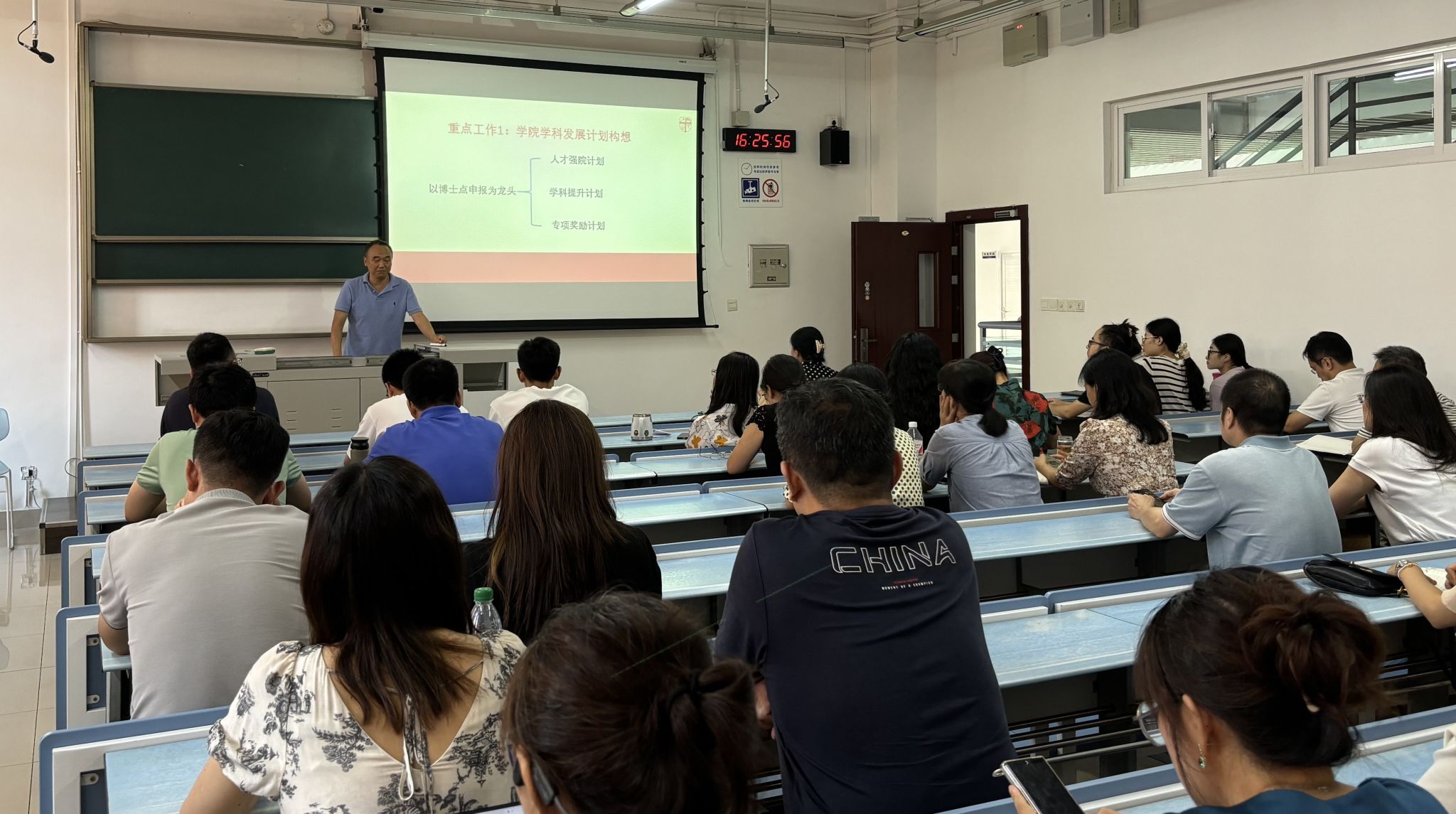 周先礼院长介绍了学院本学期的重点工作。他强调学院要聚焦学校“生医特色拓展”的发展目标,以博士点申报建设为龙头工作,凝练学科方向,牵引学院高质量发展。学院针对师资队伍建设、学科提升等重点难点环节制定相关政策,以教学成果奖和科研成果奖为突破口,建设我院标志性成果库,加强博士后队伍建设,拓宽人才师资引进渠,用好绩效分配指挥棒,激励教职工为学院学科建设贡献力量。