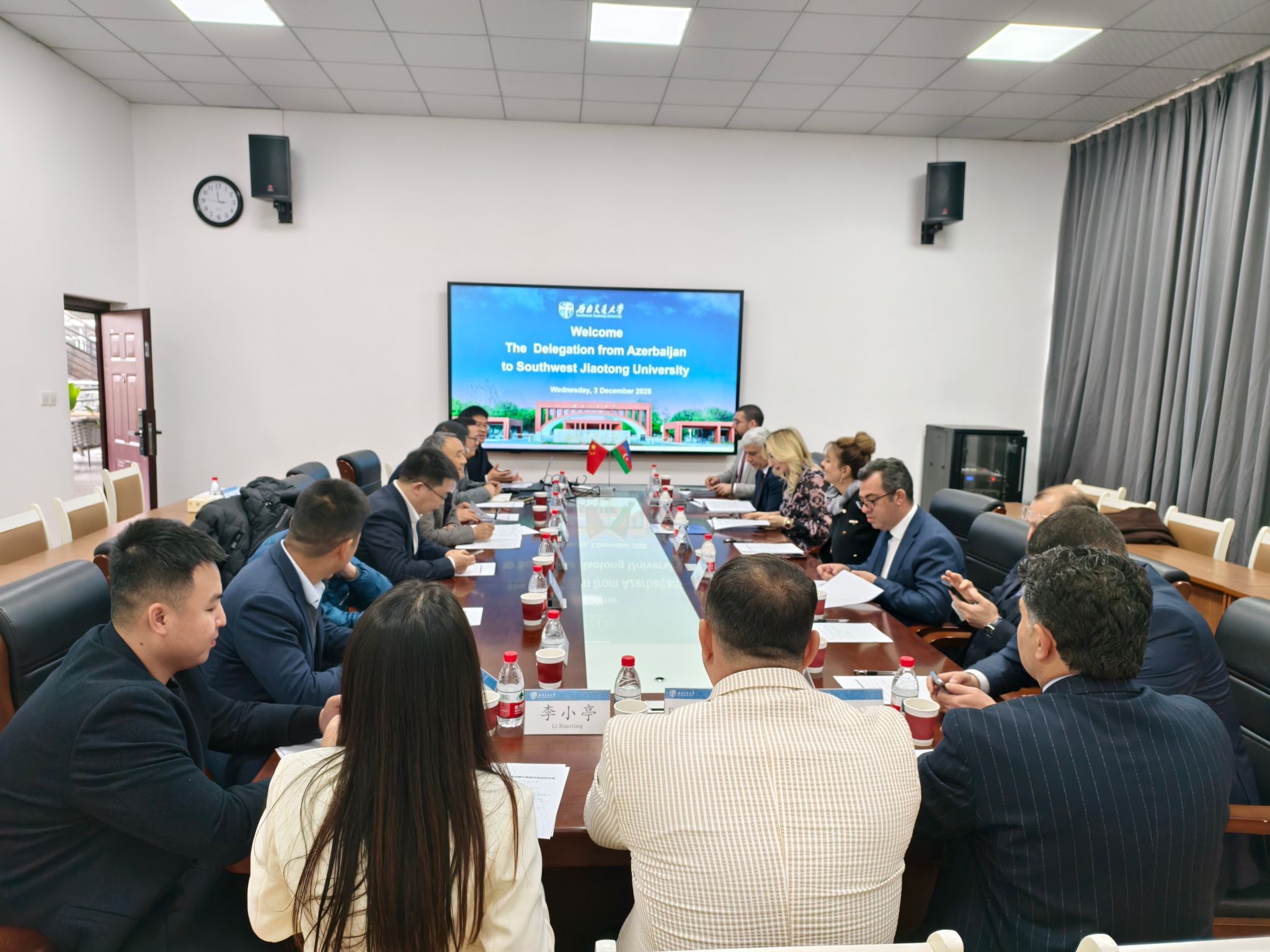 12 3 日下午,阿塞拜疆代表团访问西南交通大学,与生命科学与工程学院进行了交流座谈双方就合作办学、人才培养、科研合作等议题展开交流。