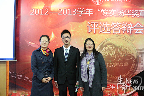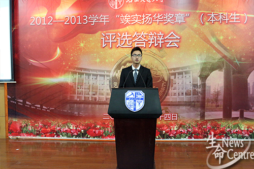 候选人演讲结束十五分钟之后,各候选人得票数及获奖章名单尘埃落定。生命学院徐博荣获2012--2013学年“竢实扬华奖章”(本科生)。