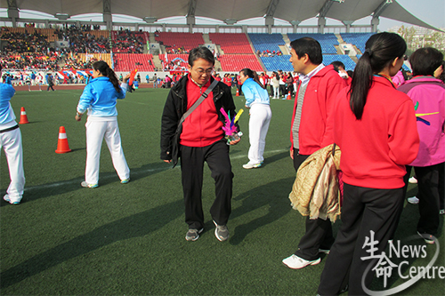 14:30老师们意气风发,准备就绪,在绿茵场上就踢毽子和足球射门两项运动展开激烈角逐,踢毽子过程中老师们使出浑身解数,各显神通最终取得530个的好成绩;足球射门比赛中,老师们如同贝克汉姆,一个个精准的进球让我院以11中的成绩获得乙组季军。