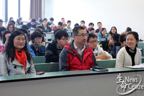 14:25, 从哈佛深造归来的孟涛副教授与同学们讨论了师生共同进步的问题,并分享了自己的经历,他表示生物工程前景远大,建议同学们努力学习,抓住时间,补充知识,最后,孟老师铿锵有力地指出:“我们的行业永远有思想!永远不会落伍!”