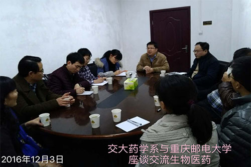 2016年12月3-4日,在药学系胡久梅书记带领下,药学系蒋合众副主任、王盛民副教授、万军副教授、童妍老师、孙会丽老师和田原老师等一行7人,赴重庆邮电大学生物信息学院和第三军医大学药学院进行了药学学科发展及研究生培养方面的专题调研。