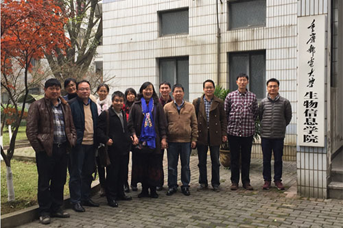12月3日下午,我院药学系老师一行七人,赴重庆邮电大学生物信息学院进行调研座谈。重庆邮电大学生物信息学院李章勇院长、舒坤贤副院长、刘毅教授和王光利主任等五位老师参加了调研座谈,双方对学科优化、资源共享和今后进一步交流合作进行了详细的研讨和商谈。