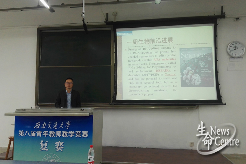 为促进青年教师不断提升教学质量和教学水平,10月28日8:30,西南交通大学第八届青年教师教学竞赛复赛于犀浦校区一号教学楼顺利举行。生命科学与工程学院高峰、黄新河、郭志云、孙会丽、候宗瑞五位老师成功入围复赛。