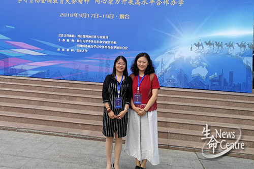 全国第九届中外合作办学年会于2018年9月17日至19日在山东烟台鲁东大学隆重举行。出席本届年会的有:教育部国际司副司长方军,山东省教育厅副厅长白皓,烟台市政府党组成员、副市长赵峰,中国高等教育学会副会长兼秘书长康凯,教育部学位中心副主任林梦泉,教育部国际司办学处处长聂瑞麟、副处长王义一行4人,以及教育部留学服务中心相关部门负责人等。我院副院长李遂焰、本科生辅导员孔琳参加了本次大会。本次大会遴选出的700多位代表来自全国27个省、自治区、直辖市,具有广泛代表性。大会主席、厦门大学中外合作办学研究中心主任、中国高等教育学会中外合作办学研究分会理事长林金辉主持年会开幕式,并在闭幕式上致辞。