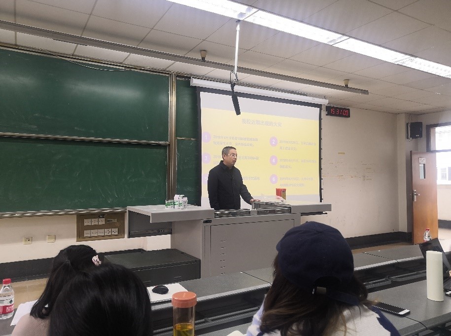 2020年11月12日下午4:00—4:40,开云kaiyun网页版官网“SIS”之研究生消防安全教育讲座于九里校区4号教学楼517教室顺利举行。保卫处消防科李为群老师受邀为同学们进行消防安全知识培训。本次活动由研究生辅导员兰卓老师主持,2020级全体研究生参加了培训。