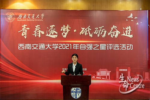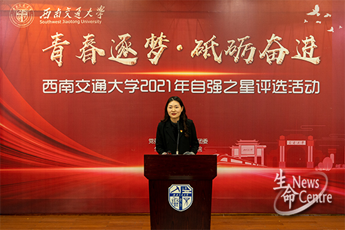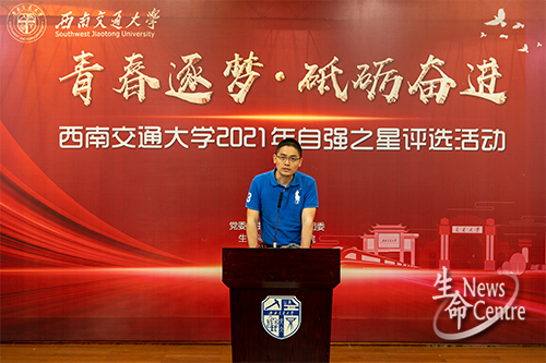 活动伊始,由生命科学与工程学院党委赵钢锋副书记做活动介绍。他对西南交通大学2021年自强之星评选活动的前期工作作出了总结与肯定,也对于16名候选人寄予了殷切的期望。随后,由2019年度中国大学生自强之星获得者公共管理与政法学院胡添凤同学分享她的自强故事,她自立自强,致力于国家政法事业,决心为国家和母校发展而自立奋斗。
