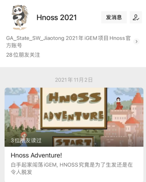 科学最终的答案都服务于生活,团队成员不仅学习新的知识,也注重合成生物学知识的分享与科普。团队和Shanghai_TechNPU_China建立了紧密的伙伴关系,在项目实施的多个方面互帮互助,还与Tongji_China, SJTang, SZ_SHDLambert_GA等队伍有着合作交流;创建了“Hnoss 2021”微信公众号,普及合成生物学知识,发布项目进展,将合成生物学以更加浅显易懂的方式推广给更多的受众。迄今为止,公众号发布了11篇文章,总浏览量超9000次。“Hnoss”团队成员在中美两国共同开展了如社区宣讲、高中宣讲、大学交流、线上宣讲会等教育交流及社会实践活动,扩大iGEM赛事的社会影响力。此外,还拍摄了中英文双语微电影上传到国内外知名视频网站BilibiliYouTube上,扩大了项目的宣传力和影响力。