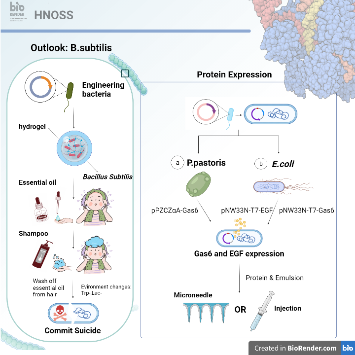 今年是西南交通大学与美国乔治亚州立大学第三次联合组队参赛iGEM。与前两届iGEM有所不同,今年联队从创新性和前瞻性的角度出发选择了更加具有挑战性的一条道路——自主选题,确定“Hnoss”作为参赛题目。“Hnoss”20213月发表在顶级期刊Nature上关于脱发的最新研究为主要研究背景,聚焦脱发问题,从毛发发育调控关键因子Gas6EGF相关的调控路径入手,利用合成生物学方法异源表达毛囊细胞生长相关蛋白,同时采用新的递送方式探究蛋白靶向递送到头皮后头发的生长效应,为脱发治疗提供全新的方法与思路。
