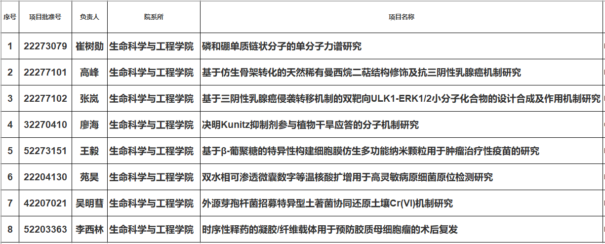 9月8日,国家自然科学基金委员会官网公布2022年度国家自然科学基金项目立项情况,开云kaiyun网页版官网获得8项国家自然科学基金项目支持,其中面上项目5项,青年科学基金项目3项,我院获批国基金资助率再创新高。具体名单如下: