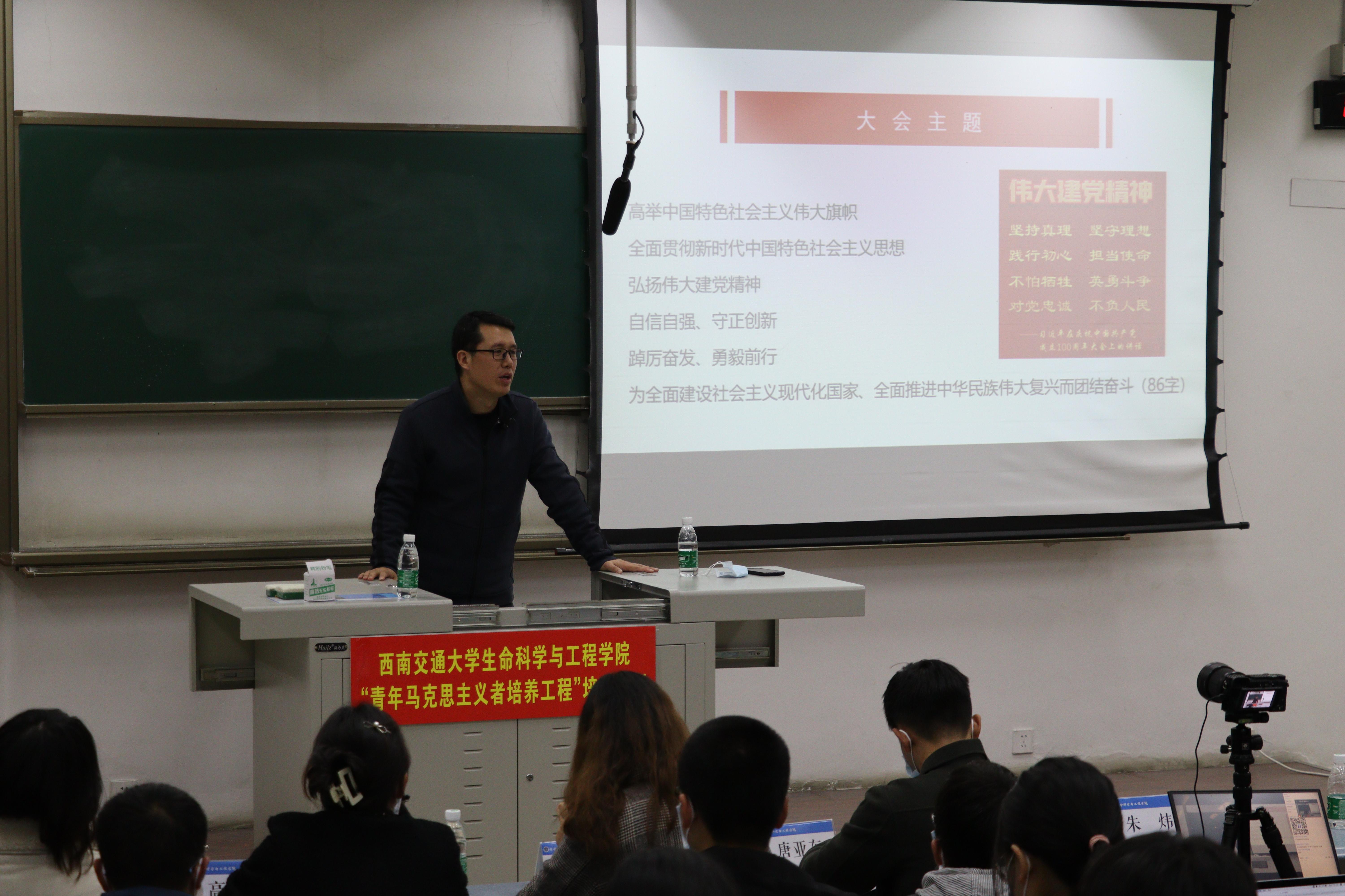 10月22日晚,生物科学与工程学院“青年马克思主义者培养工程”开班仪式在犀浦校区X1215顺利举行。参与本次开班仪式的嘉宾有马克思主义学院副教授杨伟宾、生命学院党委副书记朱炜、团委书记高鹏以及学院各年级辅导员,共170余名本科、硕士、博士学生骨干参加此次培训。