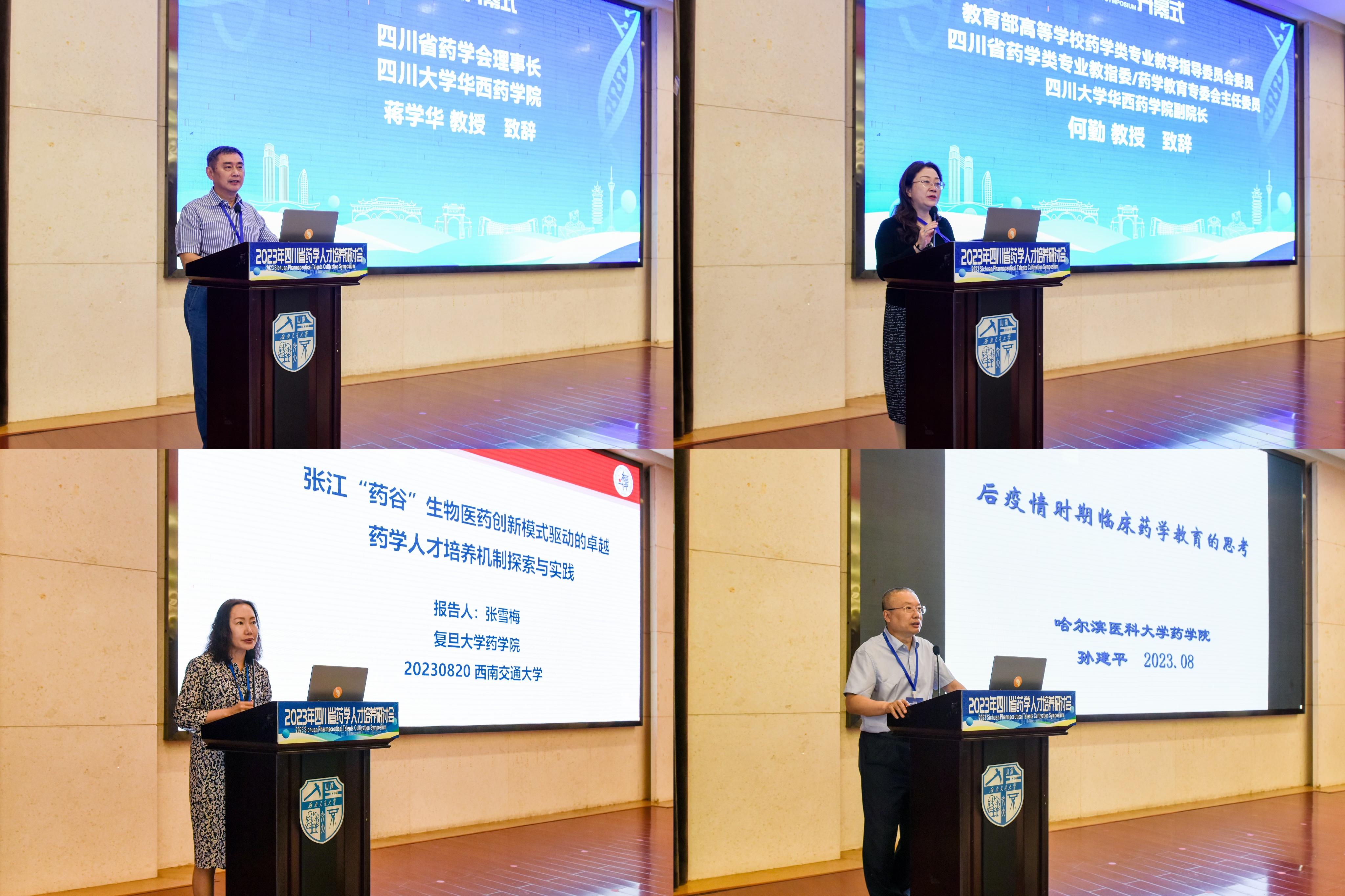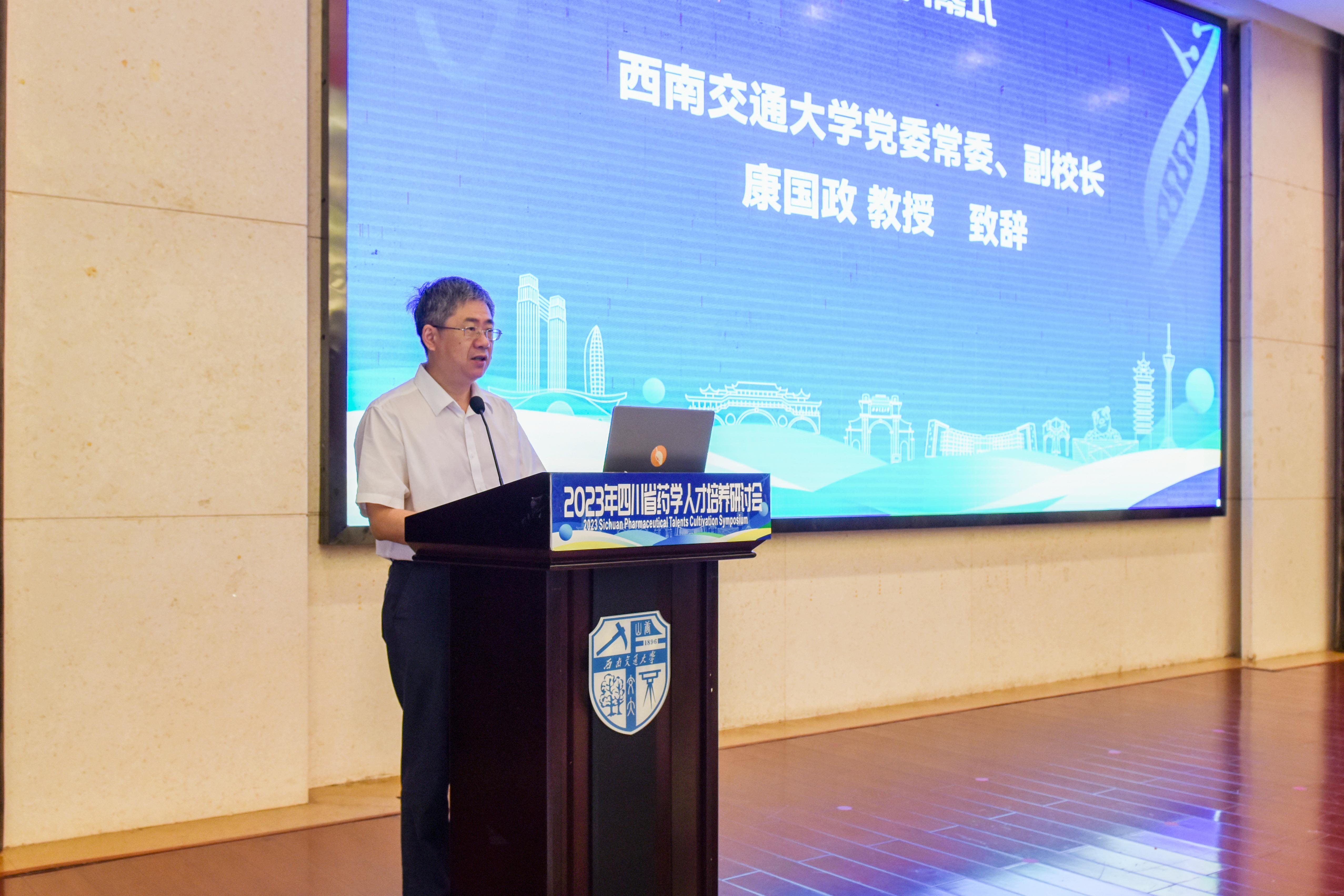 为推动药学人才培养高质量发展, 8月19日-21日,由四川省药学类专业教学指导委员会、四川省药学会药学教育专委会主办,四川省天然药物仿生合成工程研究中心、开云kaiyun网页版官网承办的“2023年四川省药学人才培养研讨会”在西南交通大学峨眉校区召开。西南交通大学党委常委、副校长康国政,教育部高等学校药学类专业教学指导委员会主任委员、中国药学会药学教育专业委员会主任委员、中国药科大学副校长姚文兵,四川省药学会理事长蒋学华,以及来自中国药科大学、复旦大学、哈尔滨医科大学、四川大学、西南交通大学、成都中医药大学、成都大学、西南医科大学、成都医学院、四川省生物医药产业集团等单位的100余名生物医药领域的专家学者齐聚西南交通大学,共同探讨高质量药学人才培养、一流专业和一流课程建设、课程思政、产学研协同育人问题。开幕会由西南交通大学研究生院常务副院长、生命科学与工程学院院长周先礼主持。
