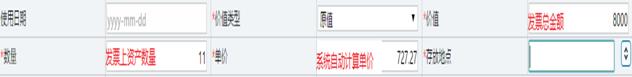 (2)填写“价值”字段,在“价值”栏输入发票总金额,“数量”栏输入资产数量, “单价”自动计算出来。注:“价值”字段,增值税专用发票填写不含税总价,其他发票填写含税总价。