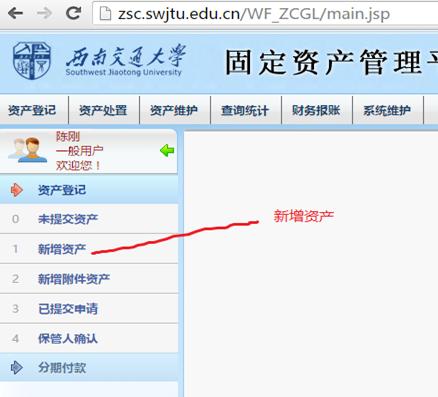 资产经过单位设备秘书、资实处审核后,进入“财务报账”状态