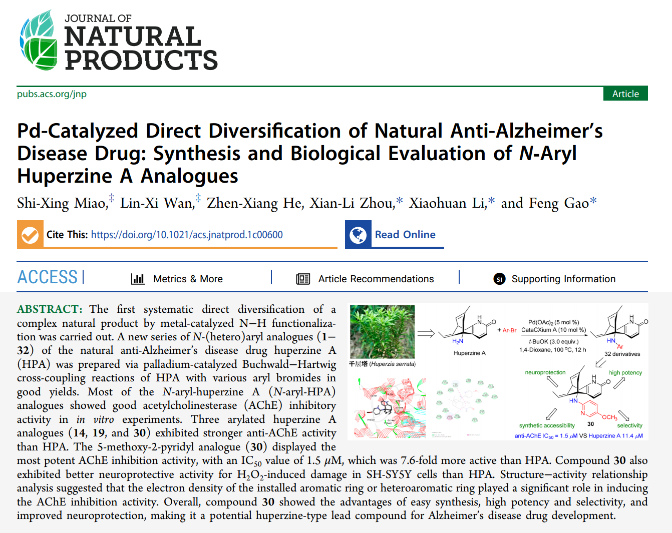 2021-05-25近日,我院“小分子天然药物”团队在天然产物化学国际权威期刊《Journal of Natural Products》(影响因子3.782,中科院一区,天然产物化...